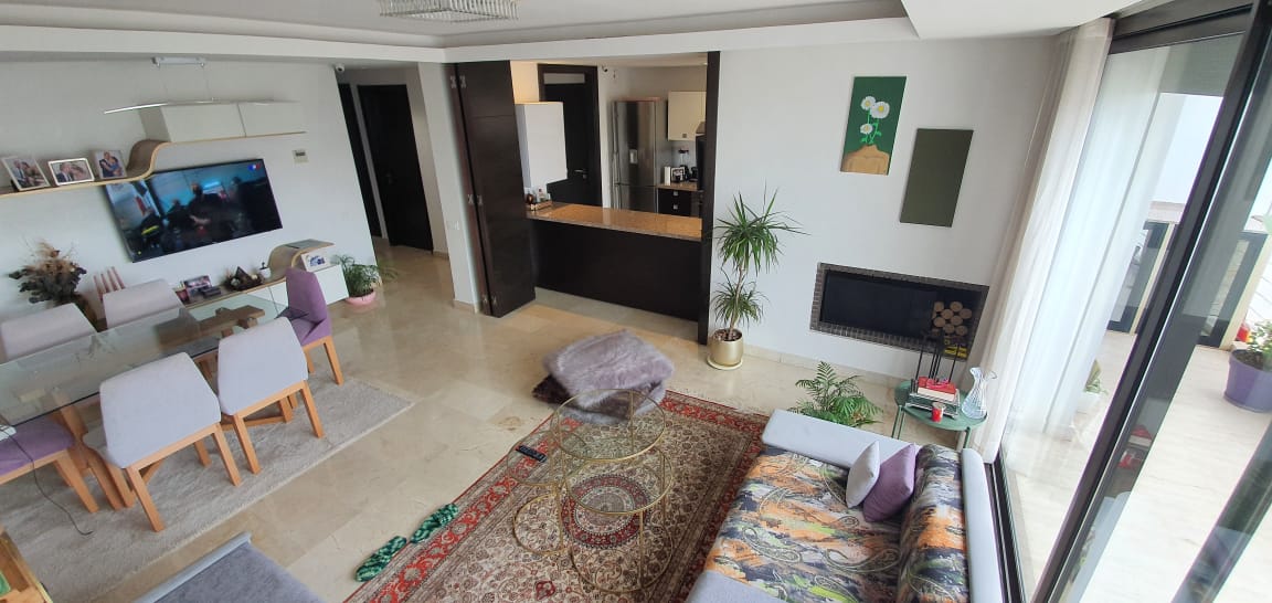 Agence Immo&Immo vous propose un bel appartement à vendre au dernier étage à casa Green town Bouskoura , d’une superficie de 100 m2 il se compose d’un salon avec cheminée , une belle terrasse ensoleillée, une cuisine équipée, une chambre d’enfant avec sa salle de bain , une suite parentale avec salle de bain et dressing.