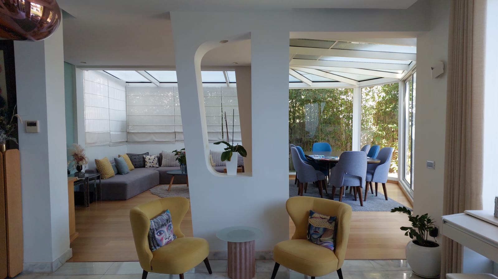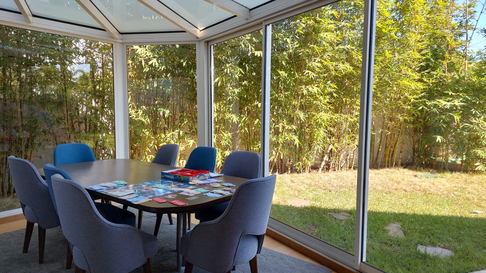- Véranda avec 2e salon intimiste et grande table à manger pour 8 à 12 personnes